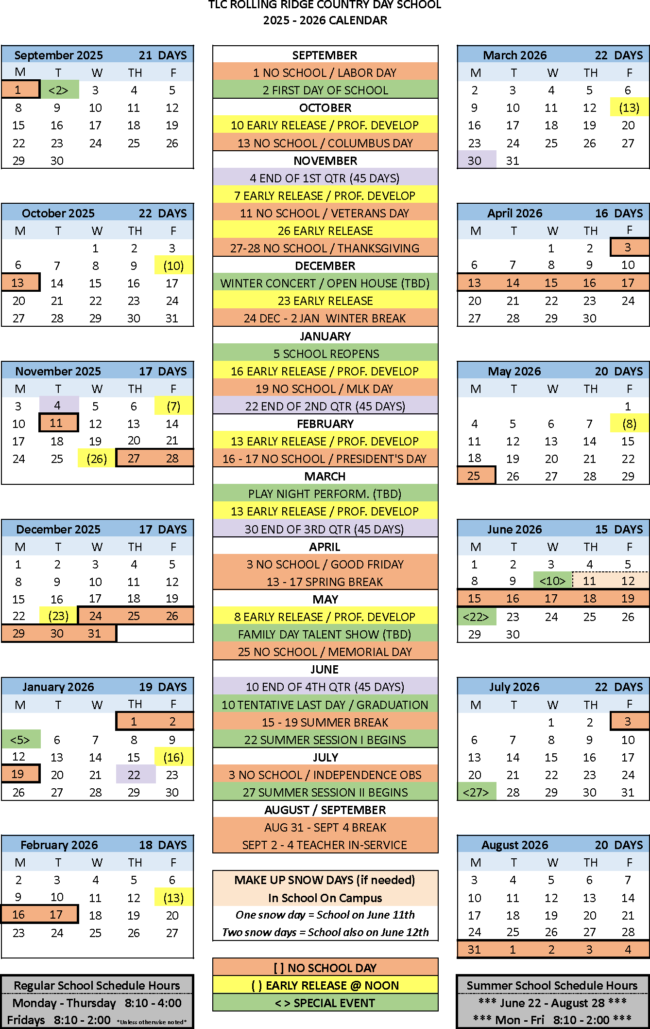 2025-2026 Day School Calendar